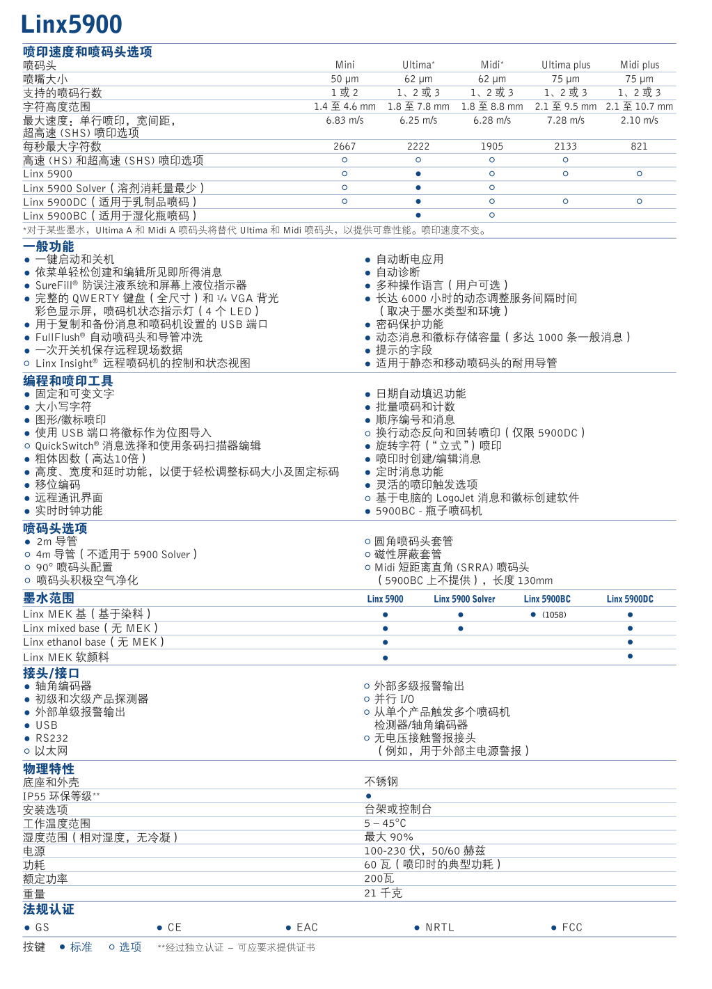 ·•以 3 行打码、USB 消息共享和可存储多达 1,000 条消息为标准 •随着您要求的变化而升级 •长达 6,000 小时的可预测服务间隔 •较低的年度维护成本 •大型彩色用户界面和提示字段,可实现快速轻松的消息创建 •IP55 等级曲面不锈钢外壳