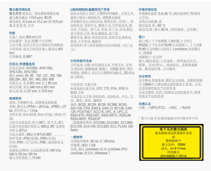 最广泛地与镜片,打标头以及激光管选项融合,– 使得 Linx CSL60 可以配置为满足您应用需求的产品,这意味着高效使 用能源而延长设备的使用寿命。